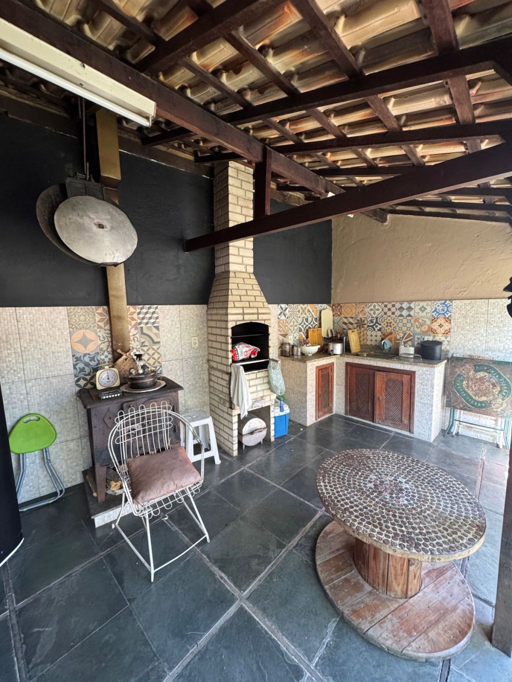 * COZINHA EXTERNA COM CHURRASQUERIA E FOGÃO A LENHA