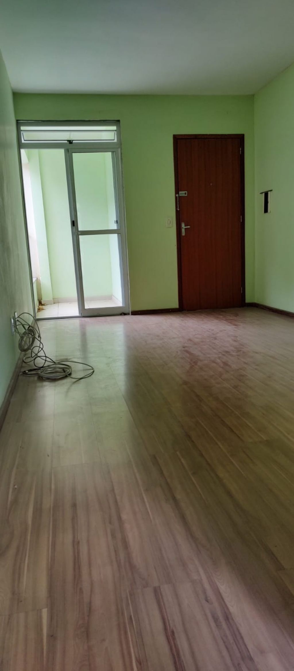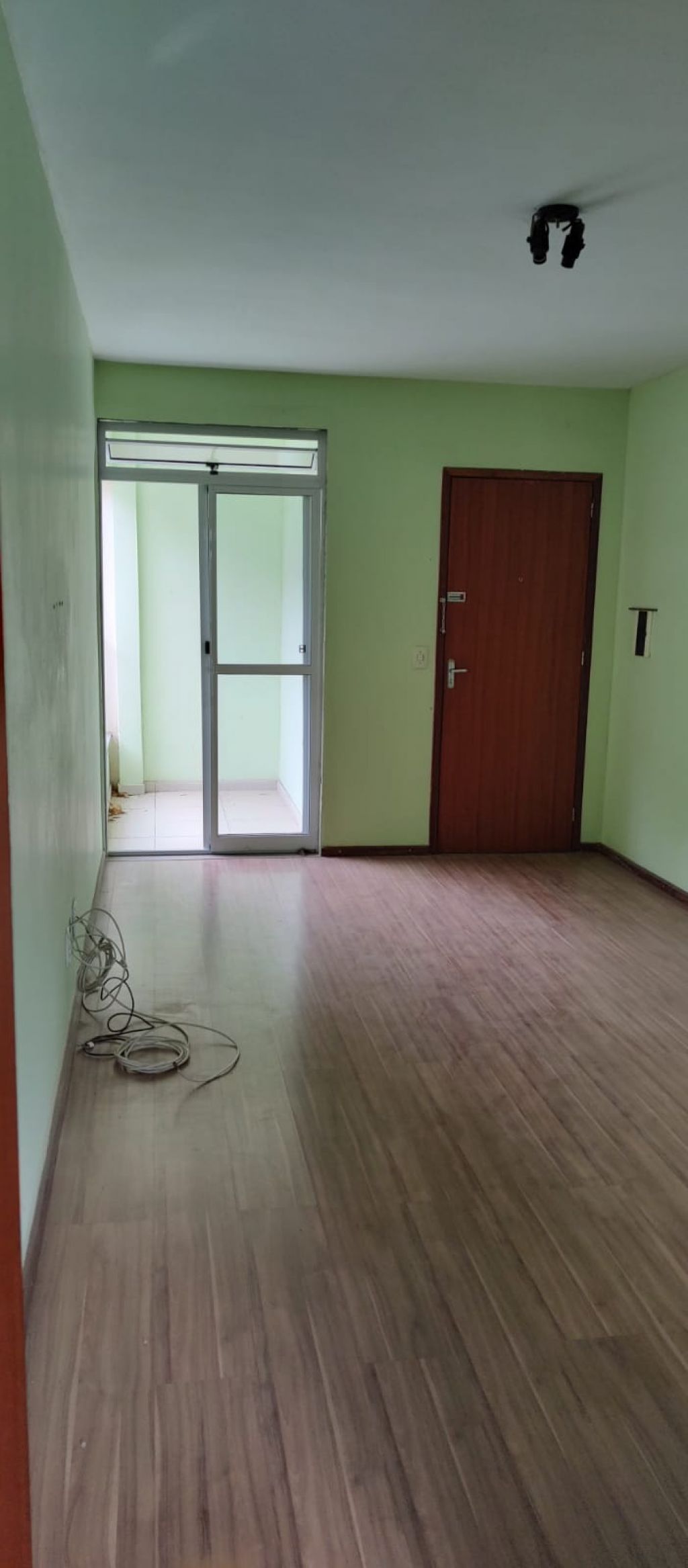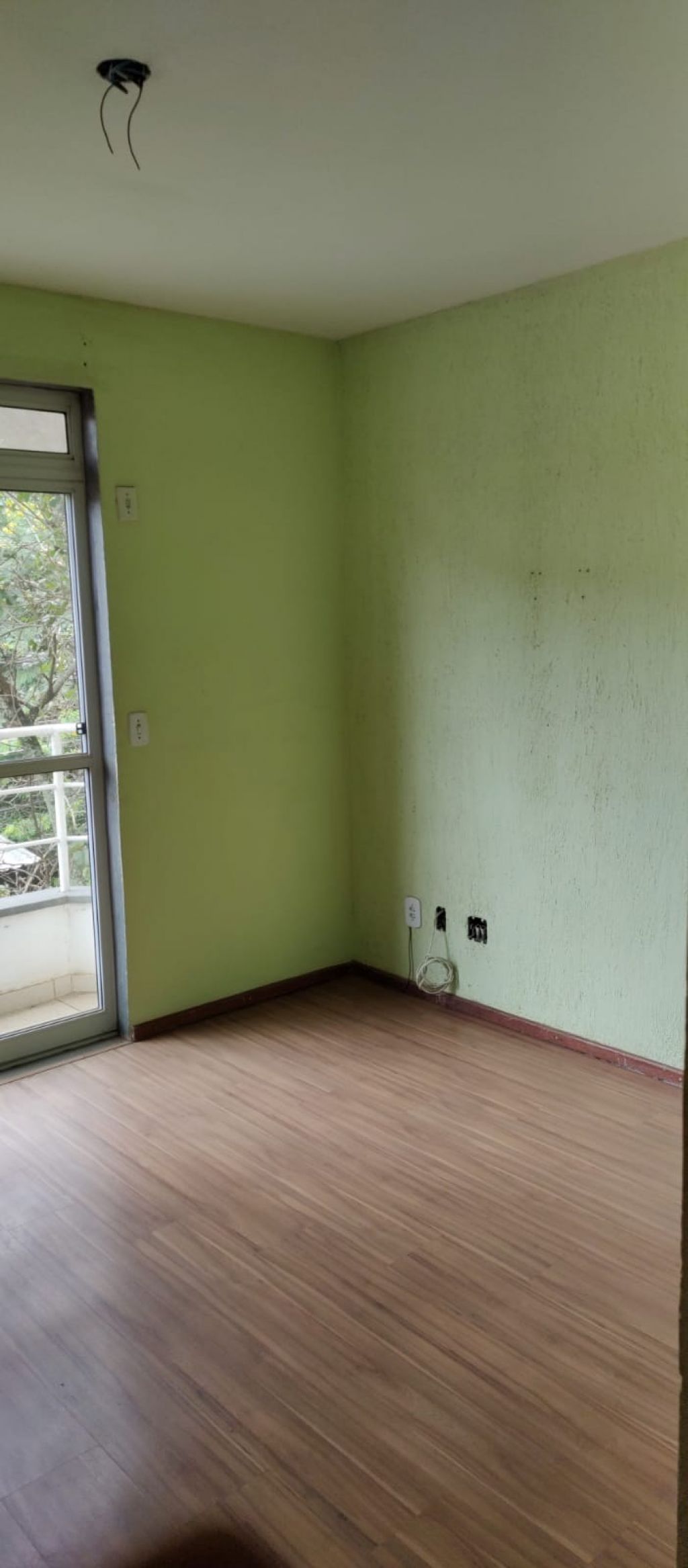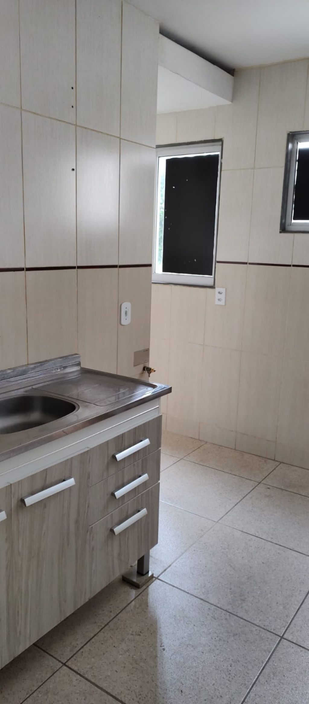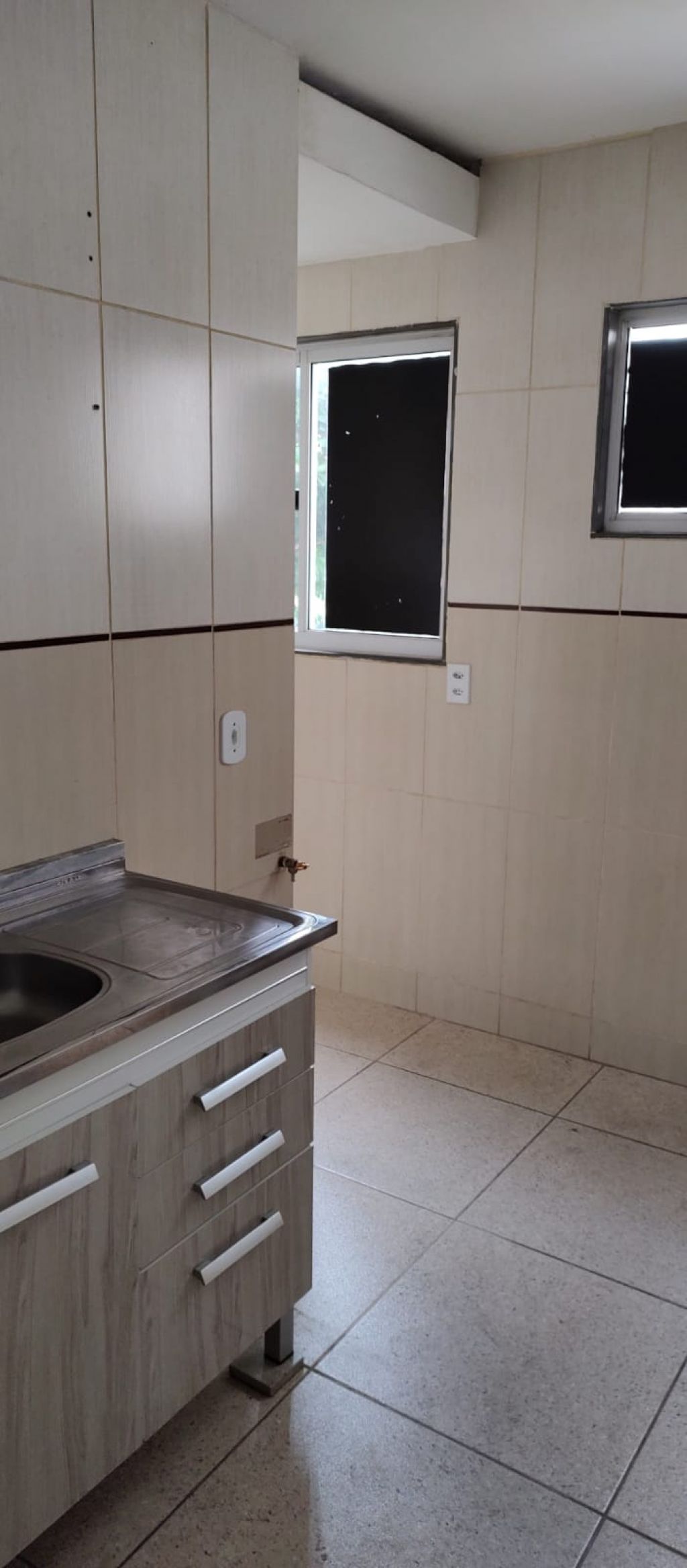 SALA, BANHEIRO SOCIAL COM GABINETE, LAVABO, ESPELHO, CAIXA DE DESCARGA ACLOPADA, BLINDEX E CHUVEIRO, 02 QUARTOS SENDO 01 COM SACADA, COZINHA E ÁREA DE SERVIÇO !